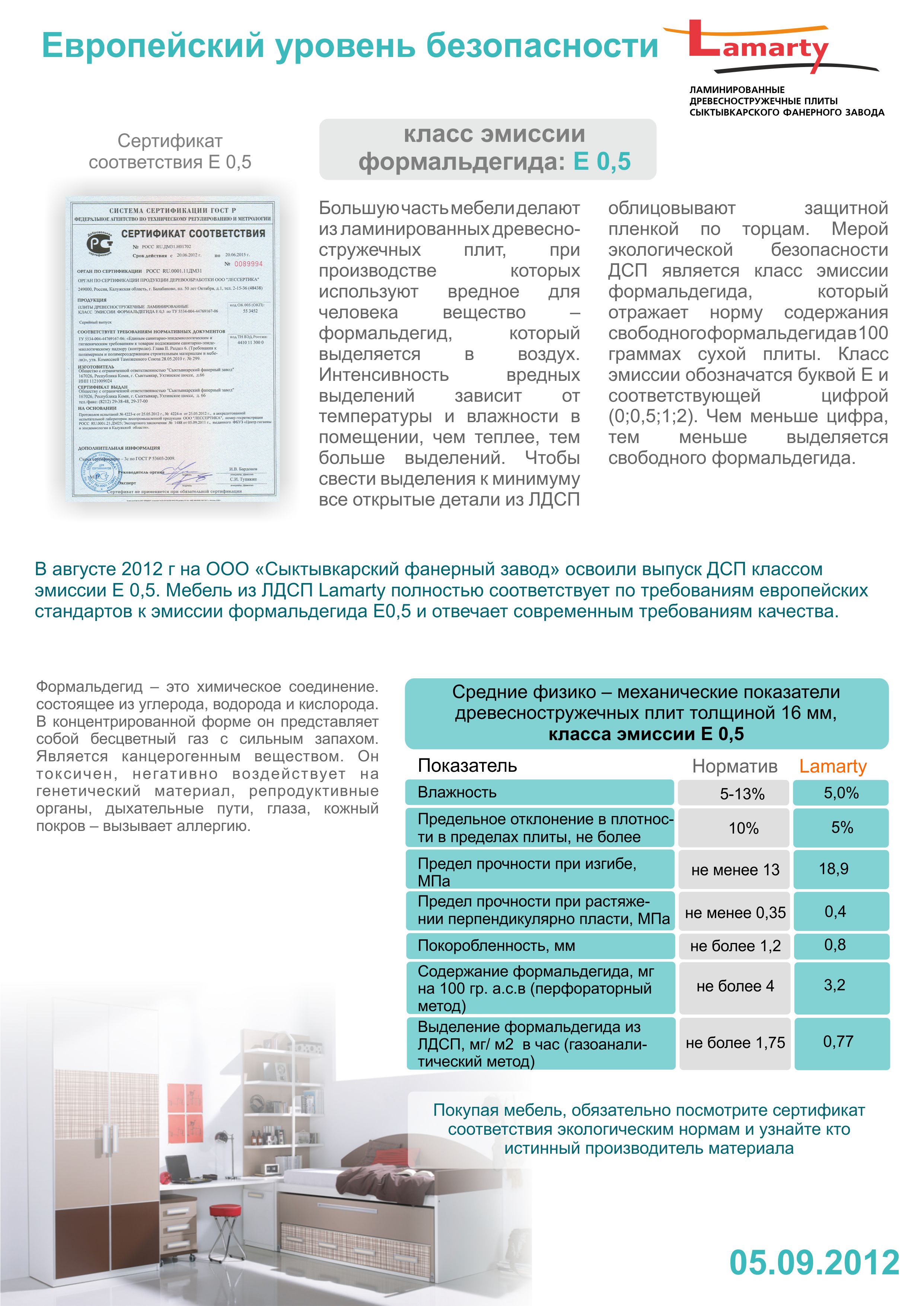 Торговый дом "Жилище" продает ламинированные древесностружечные плиты LAMARTY Сыктывкарского фанерного завода. Это единственные плиты, полностью соответствующие требованиям европейских стандартов к эмиссии формальдегида Е0,5 и отвечающие современным требованиям качества! Разрешены для использования в детских учреждениях и больницах. Большую часть мебели делают из ламинированных древесно-стружечных плит, при производстве которых используют вредное для человека вещество - формальдегид, который выделяется в воздух. Интенсивность вредных выделений зависит от температуры и влажности в помещении - чем теплее, тем больше выделений. Чтобы свести выделения к минимуму, все открытые детали из ЛДСП облицовывают защитной пленкой по торцам. Мерой экологической безопасности ДСП является класс эмиссии формальдегида, который отражает норму содержания свободного формальдегида в 100 граммах сухой плиты. Класс эмиссии обозначается буквой Е и соответствующей цифрой - 0; 0,5; 1; 2 и т.д. Чем МЕНЬШЕ цифра, тем меньше выделяется свободного формальдегида. В настоящий момент в ассортименте ТД Жилище более 100 декоров ЛДСП: древесные, фоновые, фантазийные декоры, металлики. На данной странице сайта можно ознакомиться с широким выбором декоров. ЛДСП можно использовать для промышленного и домашнего производства практически всей офисной мебели, корпусной, а также кухонной. При этом про домашнее производство мы не зря говорим - ЛДСП очень легко поддается обработке. Из него легко и удобно выпилить практически что угодно. |